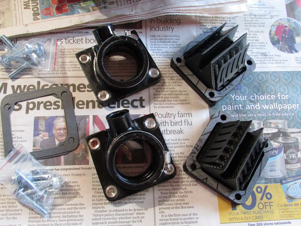 VForce Four type reed cages with British made Showe reeds, 34mm carb adaptors -