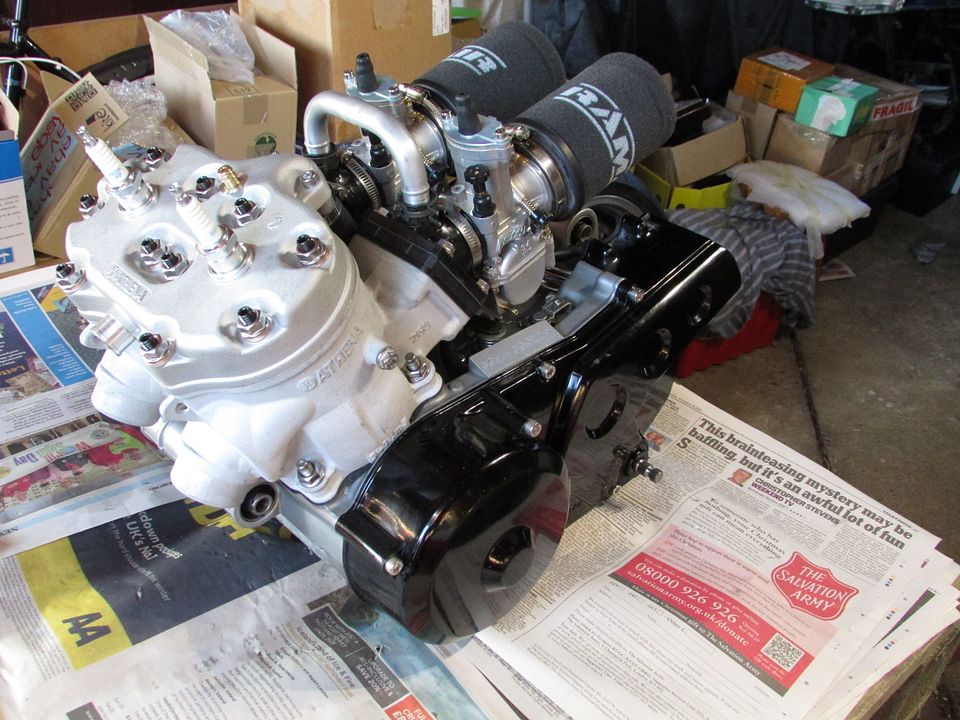 First complete bolt together with PWK34 carbs and Ramair filters just to check that everything fits -